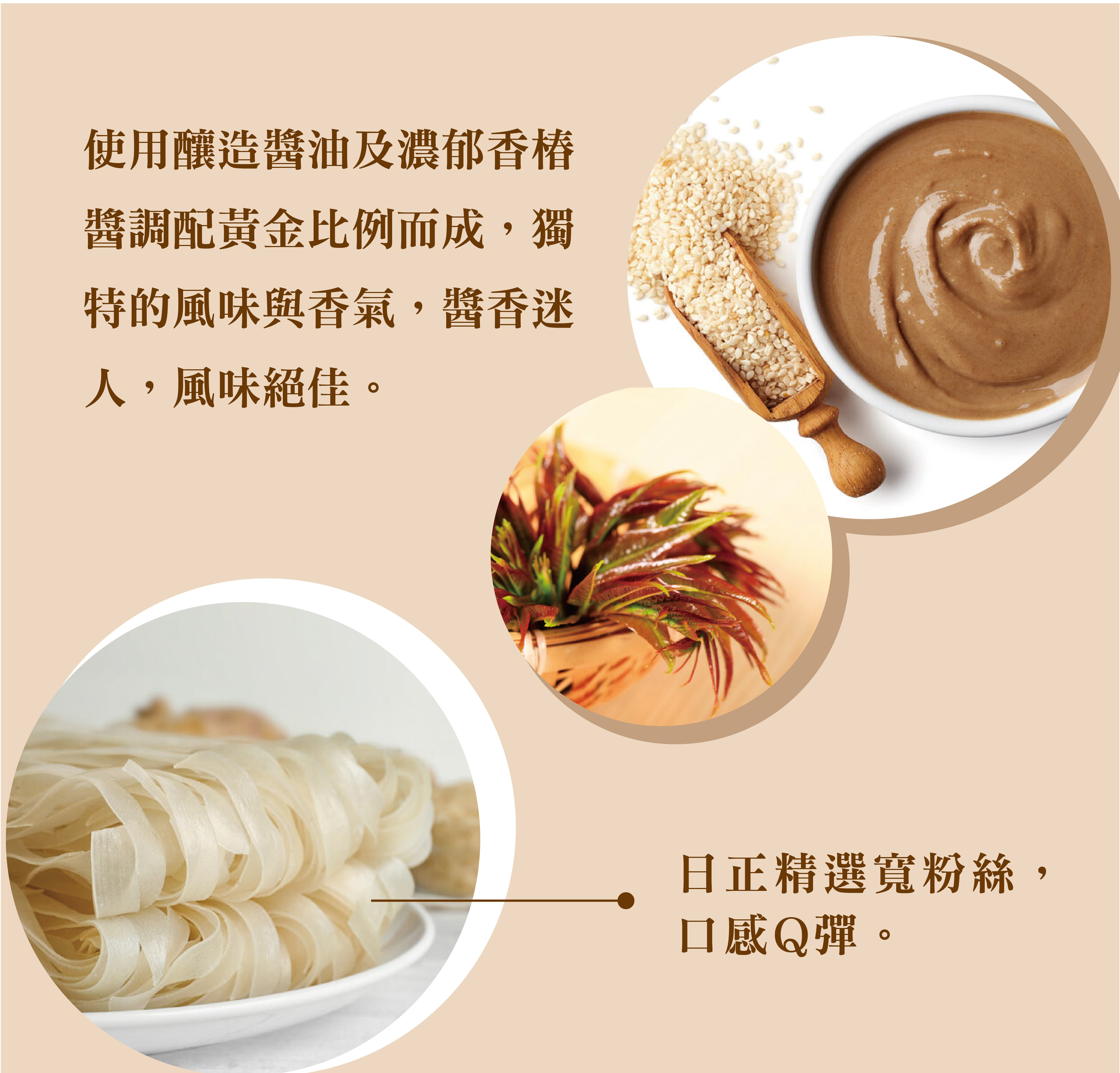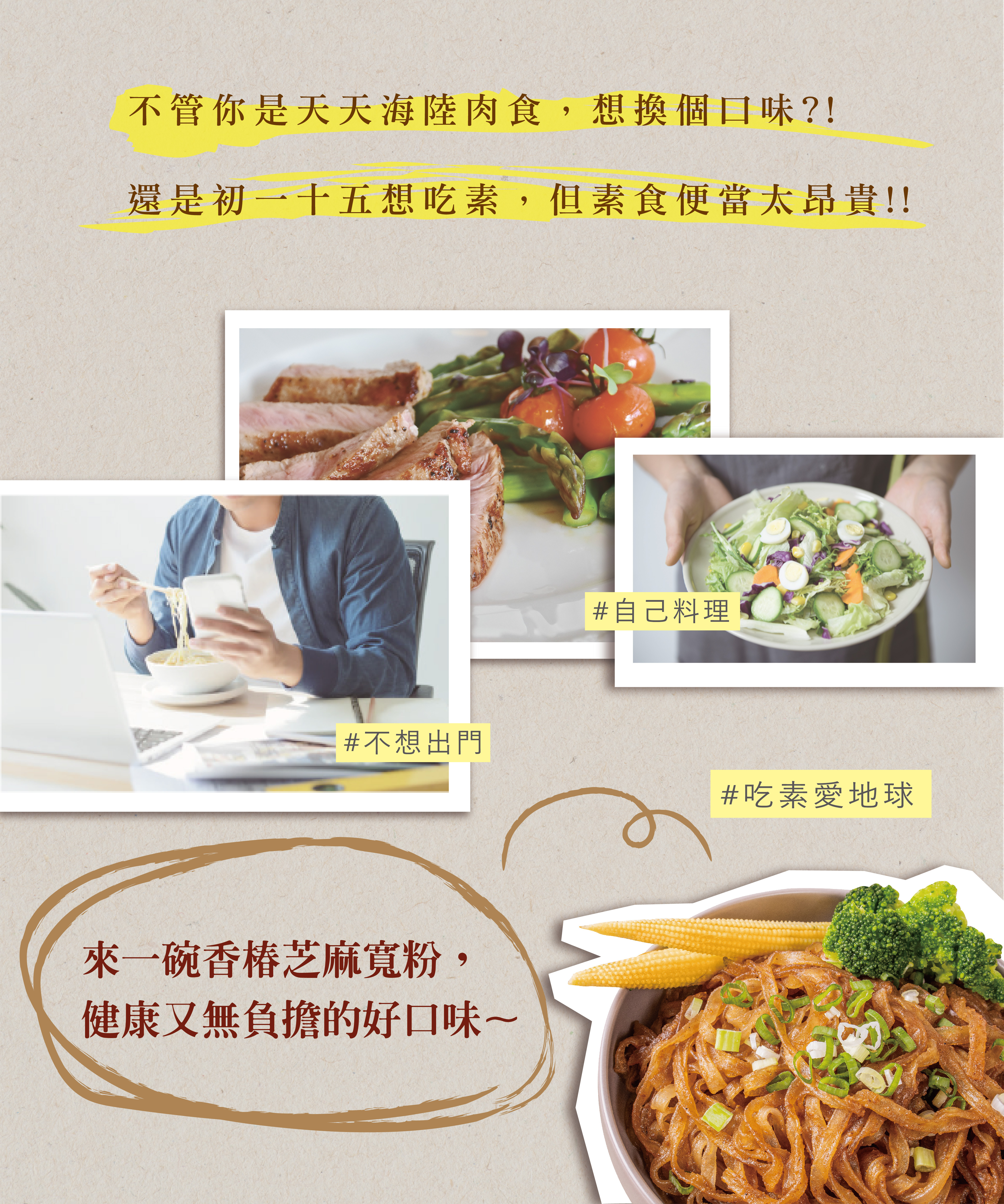 ●調理方便,寬粉泡軟後用滾水煮5-7分鐘,撈起後與醬包、蔬菜包一起拌均勻即可食用