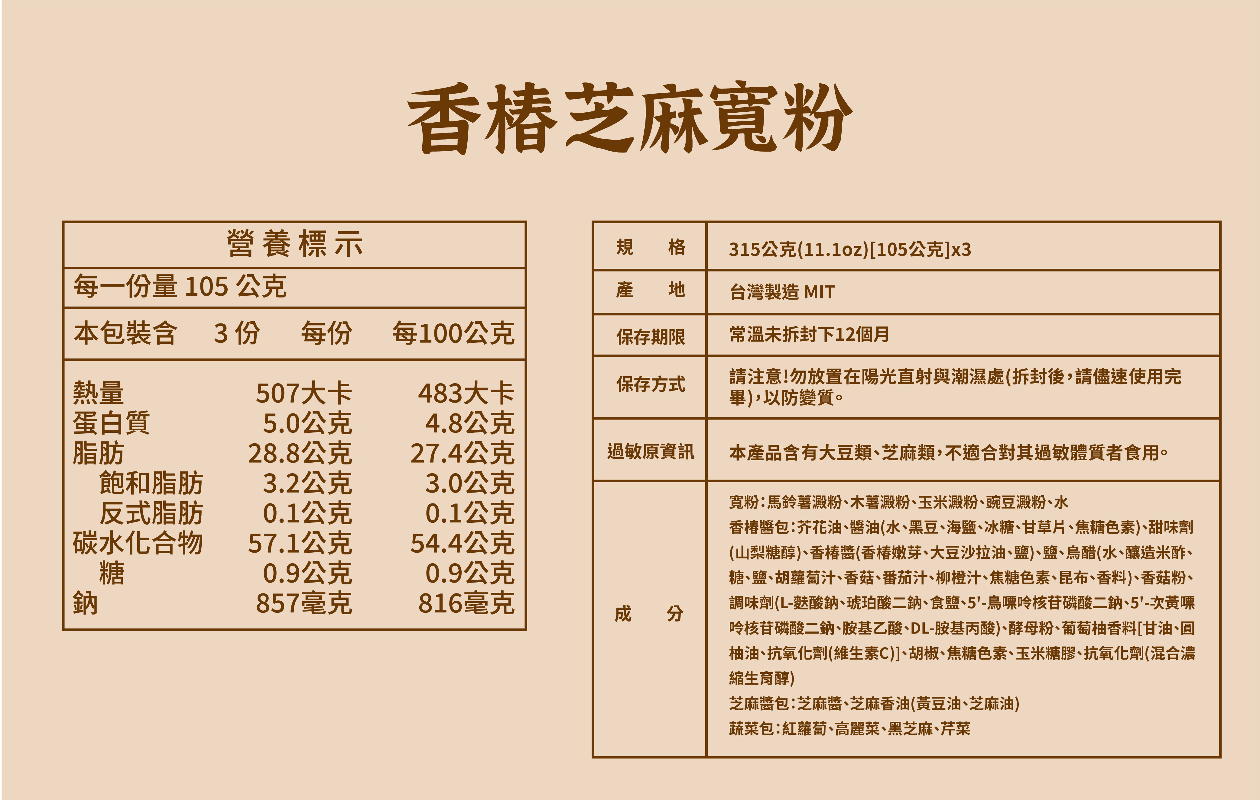 品名:【龍廚】香椿芝麻寬粉(一袋3入)
