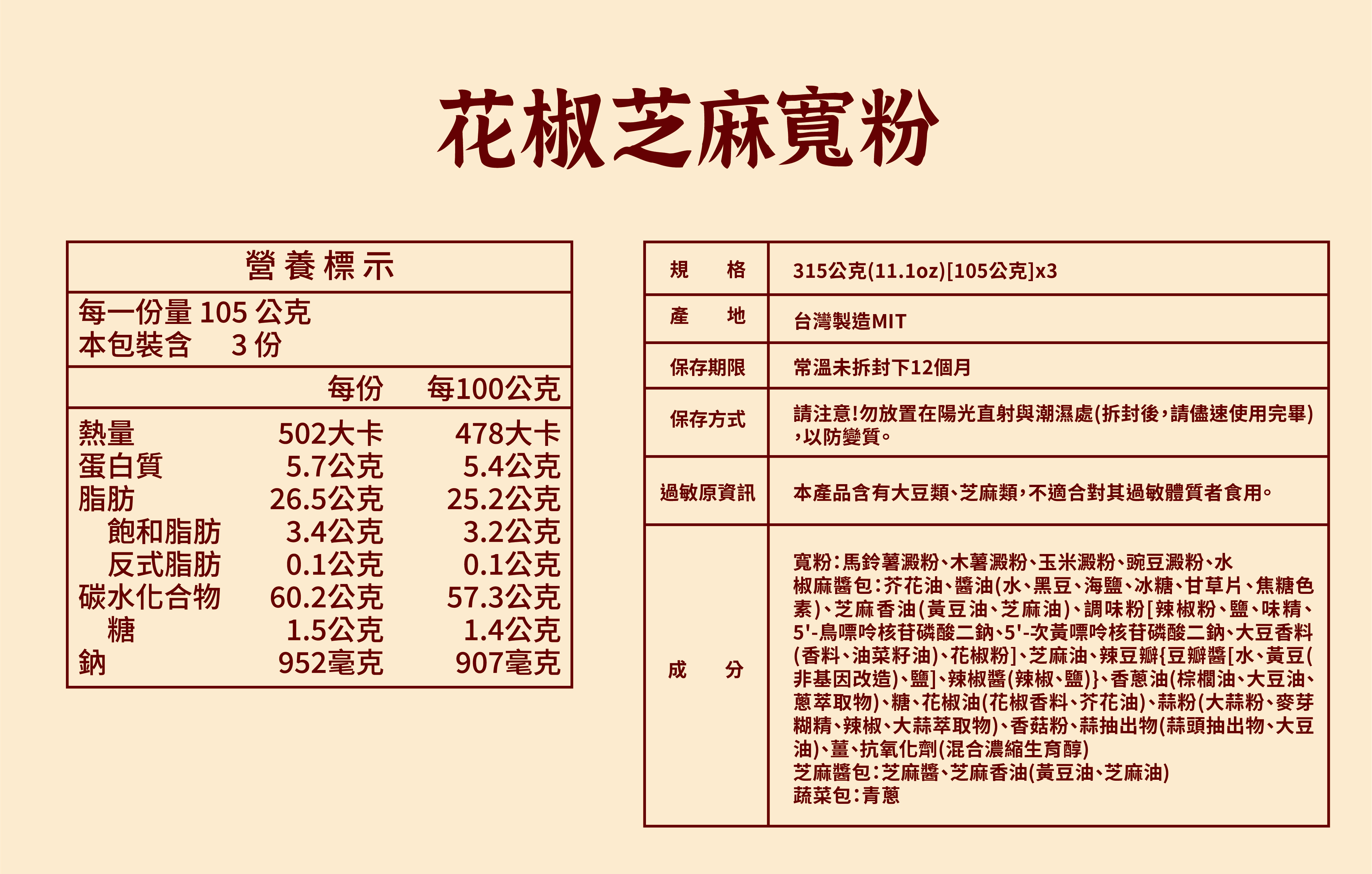 品名:【龍廚】花椒芝麻寬粉(一袋3入)
